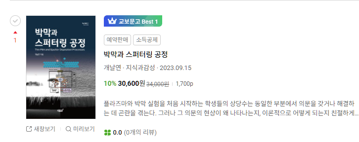 지난주간 교보 기술공학부분 1위 찍었어요 ㅠㅠ