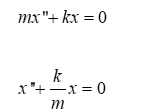 k는 스프링상수라고 부르는 값입니다. 가속도인 (d2x/dt2)를 x''으로 표현해서 놓으면, 다음의 형태로 바뀝니다.