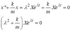이러한 방법에 의해 x''+(k/m)x=0는 아래와 같은 형태의 해를 갖게 됩니다.